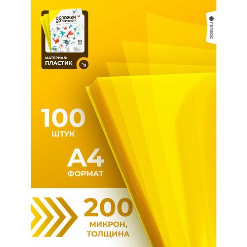 Обложки для переплета прозрачные пластиковые гелеос, А4, 0.2 мм, желтые , 100 шт.