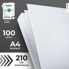 Обложки для переплета картонные гелеос, А4, тиснение под "кожу", белые , 100 шт.