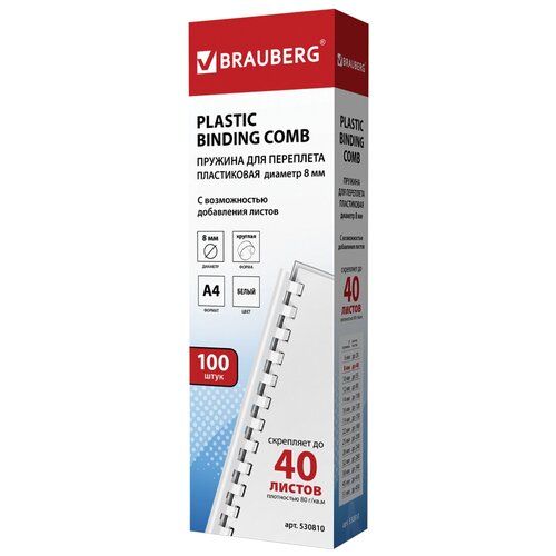Найти - BRAUBERGдля переплета 8 мм, пластикбелый100 шт.