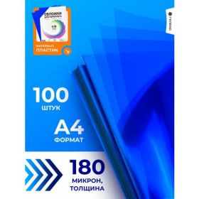 Обложки для переплета прозрачные пластиковые гелеос, А4, 0.18 мм, синие , 100 шт.