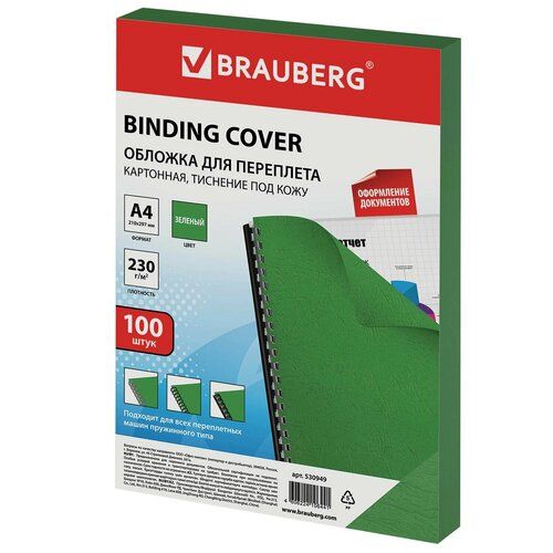 Найти - BRAUBERGдвухсторонняя для переплета A4 230 г/м², картон, тиснение под кожузеленый100 шт.