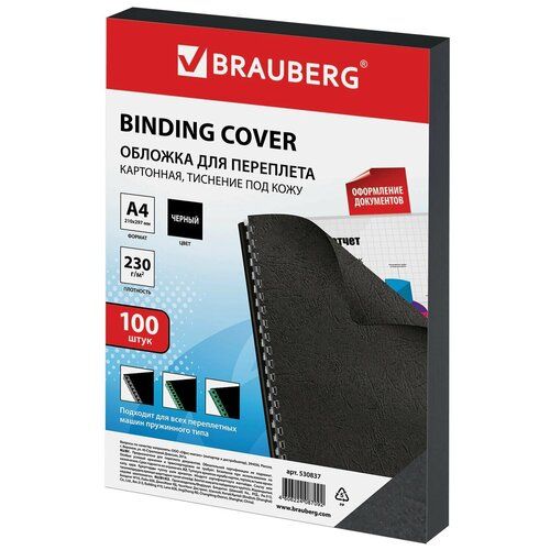 Найти - BRAUBERGдвухсторонняя для переплета A4 230 г/м², картон, тиснение под кожучерный100 шт.