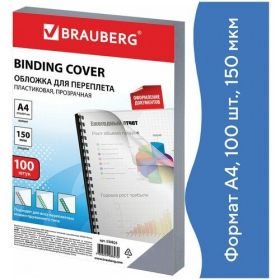 Найти - BRAUBERGдвухсторонняя для переплета A4 150 мкм, пластикпрозрачный100 шт.