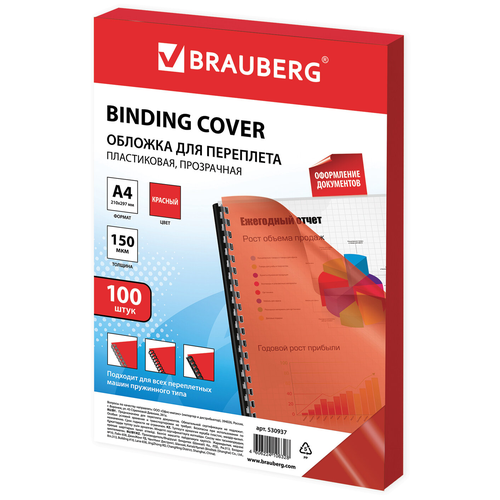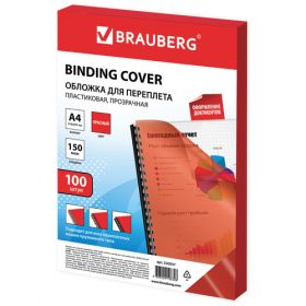 Найти - BRAUBERGдвухсторонняя для переплета A4 150 мкм, пластикпрозрачно-красный100 шт.