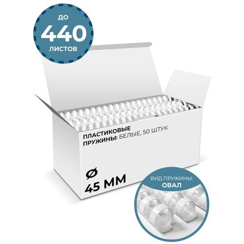 Пружины пластиковые для переплета гелеос, 45 мм (440 листов), белые, 50 шт.