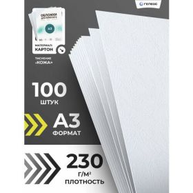Обложки для переплета картонные А3 гелеос придадут документам презентабельный внешний вид, защитят от неблагоприятный внешних факторов. Обложки для брошюратора (биндер, переплетчик) белые гелеос можно использовать при переплете на пластиковую и металлические пружины. Подойдут для работы в офисе, минитипографии, школе, учебных заведениях и дома для любого вида документов или творчества. Одной упаковки хватит на оформление 50 документов, с учетом использования 2 обложек на документ.