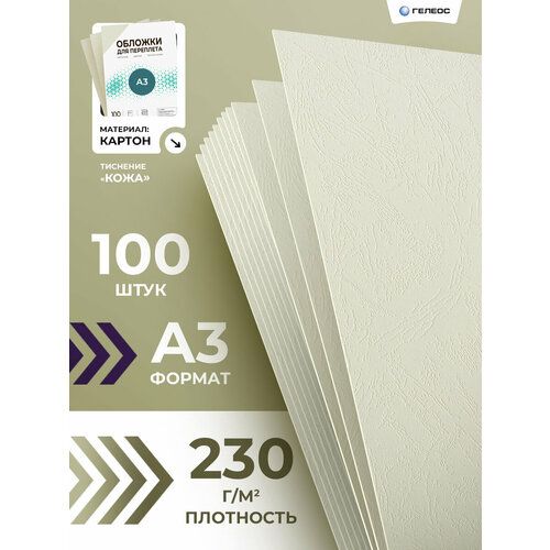 Обложки для переплета картонные А3 гелеос придадут документам презентабельный внешний вид, защитят от неблагоприятный внешних факторов. Обложки для брошюратора (биндер, переплетчик) слоновая кость гелеос можно использовать при переплете на пластиковую и металлические пружины. Подойдут для работы в офисе, минитипографии, школе, учебных заведениях и дома для любого вида документов или творчества. Одной упаковки хватит на оформление 50 документов, с учетом использования 2 обложек на документ.