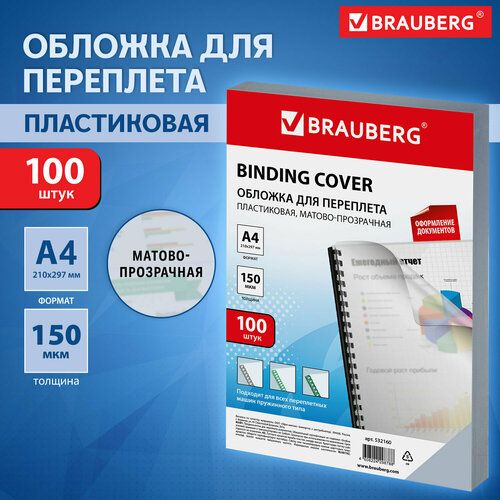 Найти - Обложки пластиковые д/переплета А4, комплект 100 шт, 150 мкм, матово-прозрачные, BRAUBERG, 532160