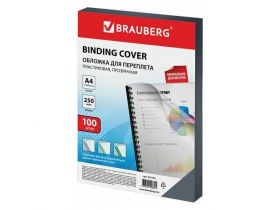 Обложки пластиковые для переплета, А4, комплект 100 шт, 250 мкм, прозрачные, BRAUBERG, 532162 4295192351