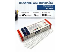 Пружина пластиковая для переплета, 8 мм, для сшивания 20-45 листов, белая, 100 шт, РеалИСТ 102056483634