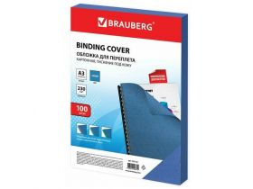 Обложки картонные д/переплета А3, комплект 100 шт, тисн. под кожу, 230 г/м2, синие, BRAUBERG, 532156 101411756251