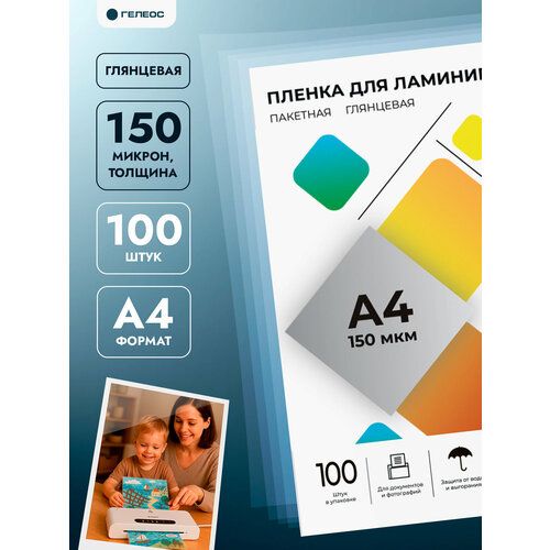 Найти - Пленка для ламинирования А4 150 мкм ГЕЛЕОС, 216х303 мм, 100 шт.