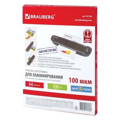 Найти - Пакетная пленка для ламинирования BRAUBERG Пленки-заготовки, антистатик, A4, 100 мкм, 531793 100 шт. 100 мкм