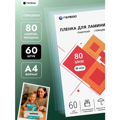 Найти - Пленка для ламинирования гелеос, А4, 80 мкм 60 штук