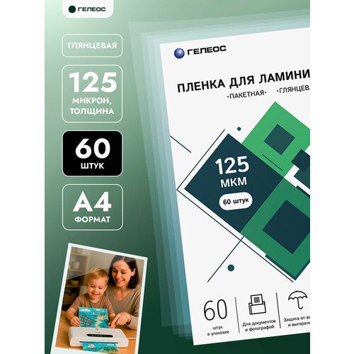 Найти - Пленка для ламинирования гелеос, А4, 125 мкм 60 шт.
