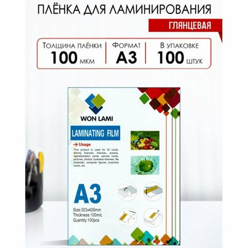 Пленка имеет формат А3 (303х426 мм), что позволяет ламинировать документы и фотографии различных форматов. В упаковке вы найдете 100 штук пленки, что обеспечивает удобство использования и экономичность.