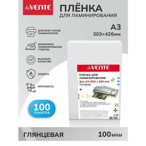 Найти - Пленка для ламинирования deVENTE A3 303x426 мм, толщина 100 мкм, с клейким слоем, 100 л