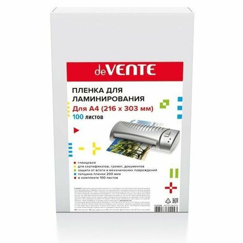 Пленка для ламинирования А4, 200 мкн, 100 шт. "deVENTE"