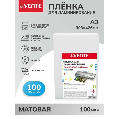 Пленка для ламинирования "deVENTE" A3 303x426 мм, толщина 100 мкм, матовая, 100 л