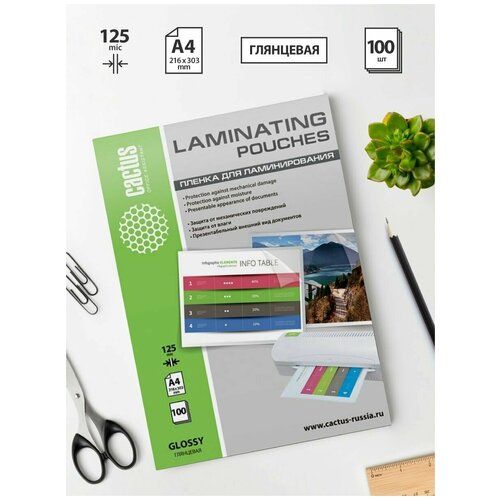 Найти - Пленка для ламинирования Cactus А4(216x303 мм.) 125 мкм. 100 шт. CS-LPGA4125100