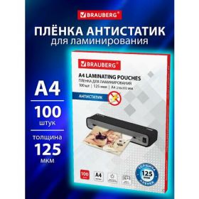 Найти - Пакетная пленка для ламинирования BRAUBERG Пленки-заготовки, антистатик, A4, 125 мкм, 531794 100 шт. 125 мкм