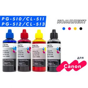 Набор состоит из 4 флаконов по 100мл универсальных чернил Canon, используются для заправки картриджей: