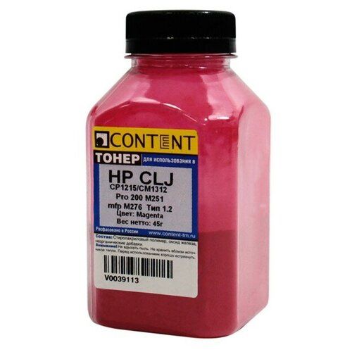 Найти - Тонер Content для HP CLJ CP1215/CM1312/Pro 200 M251/mfp M276, Тип 1.2, M, 45 г, банка