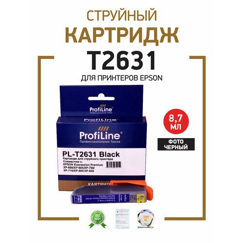 Струйный картридж PL-T2631 для принтеров Epson Expression Premium XP600/XP605/XP700/XP710/XP800/XP820 с чернилами Photo Black 8,7 мл ProfiLine