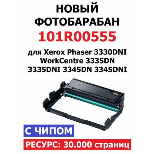 Фотобарабан с чипом для Xerox Phaser 3330DNI WorkCentre 3335DN 3335DNI 3345DN 3345DNI. Новый, запечатанный, в фирменной упаковке с пломбой "премиум". Качественный аналог 101R00555 от лучшего производителя совместимых расходных материалов - UNITON Premium. Готов к работе на все 100%. Решает вопрос с изношенным драм картриджем (ошибка - замените копи-картридж). Вам достаточно его распаковать и снять защиту фотобарабана. Ресурс: 30.000 страниц на 5% заполняемости листа формата А4. Гарантия: 3 года. Срок хранения: не ограничен