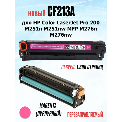 Найти - Картридж CF213A Magenta с чипом для HP Color LaserJet Pro 200 M251n M251nw MFP M276n M276nw - Цвет: пурпурный / красный (1.800 страниц) - UNITON