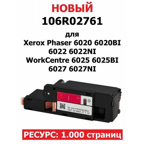 Найти - Картридж с чипом для Xerox Phaser 6020 6020BI 6022 6022NI WorkCentre 6025 6025BI 6027 6027NI - Цвет: пурпурный / красный - 106R02761 - (1.000 страниц) - Hi-Black