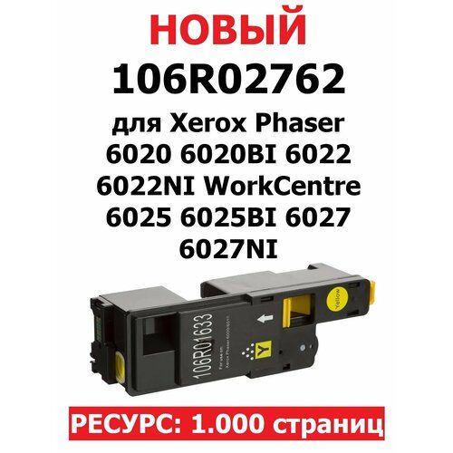 Найти - Картридж с чипом для Xerox Phaser 6020 6020BI 6022 6022NI WorkCentre 6025 6025BI 6027 6027NI - Цвет: жёлтый - 106R02762 - (1.000 страниц) - Hi-Black