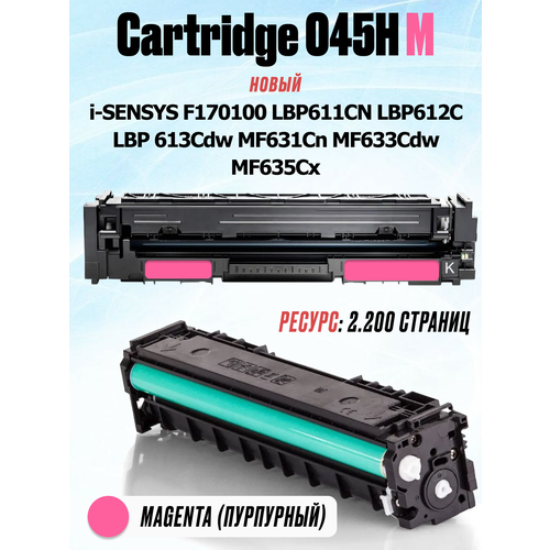 Картридж для Canon i-SENSYS LBP651C LBP652C LBP653Cdw LBP654Cx MF733Cdw MF734Cdw MF735Cx совместимый аналог Cartridge 046M цвет: Magenta пурпурный, ресурс 2200 страниц, Гарантия: 3 года