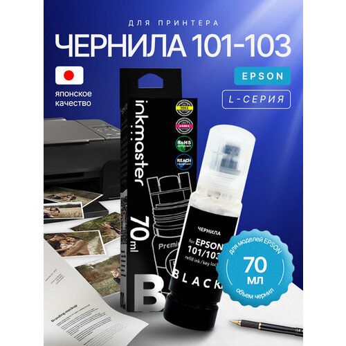 Найти - Чернила (краска) для принтера Epson 101/103 (L1110-L5290 и L1250-L6290), система Key Lock, черный (C13T03V14A/C13T00S14A), 70мл, совместимые Inkmaster