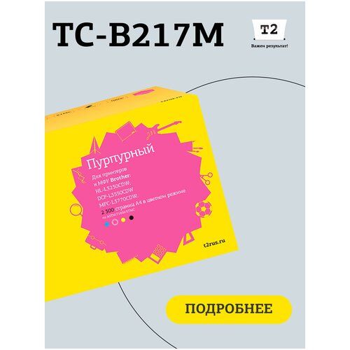 Лазерный картридж T2 TC-B217M (HL-L3230CDW/DCP-L3550CDW/MFC-L3770CDW) для Brother, пурпурный. Подходит для принтеров - Brother HL-L3230CDW; DCP-L3550CDW; MFC-L3770CDW. Оригинальный картридж - TN-217M.