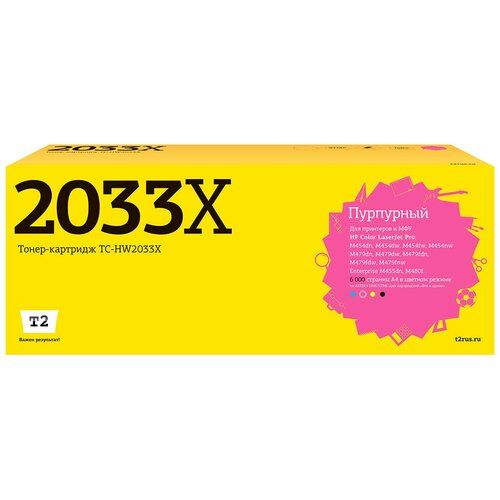 Лазерный картридж T2 TC-HW2033X (CLJ Pro M454dn/M454dw/M454nw/M455dn/M479dw/M479fdn/M479fdw/M479fnw/M480f) для HP, пурпурный, с чипом. Подходит для принтеров - HP Color LaserJet Pro M454dn; M454dw; M454nw; M455dn; M479dw; M479fdn; M479fdw; M479fnw; M480f. Аналог картриджа - HP W2033X