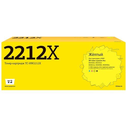 Лазерный картридж T2 TC-HW2212X (Color LaserJet Pro M255dw/M282nw/M283fdw/M283fdn) для HP, желтый, с чипом. Подходит для принтеров - Color LaserJet Pro M255dw; M282nw; M283fdw; M283fdn. Аналог картриджа - HP W2212X