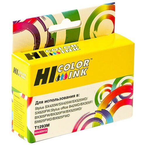 Картридж Hi-Black (HB-T1293) для Epson Stylus SX230/ 235W/ SX420W/ SX425W/ BX305F, M Стабильная работа офисной техники во многом осуществляется благодаря высокому качеству расходных материалов от надёжного производителя. Торговая марка Hi-Black является крупным игроком на российском рынке расходных материалов и представлена популярными линейками товаров для печати: лазерными и струйными картриджами, чернилами, СНПЧ, тонерами (цвет и монохром), серией запасных частей и фотобумагой. Мы берем на себя заботу о том, чтобы все новинки тестировались, и лучшие из них попадали на Российский рынок в качестве готового решения для широкого спектра печатающего оборудования.