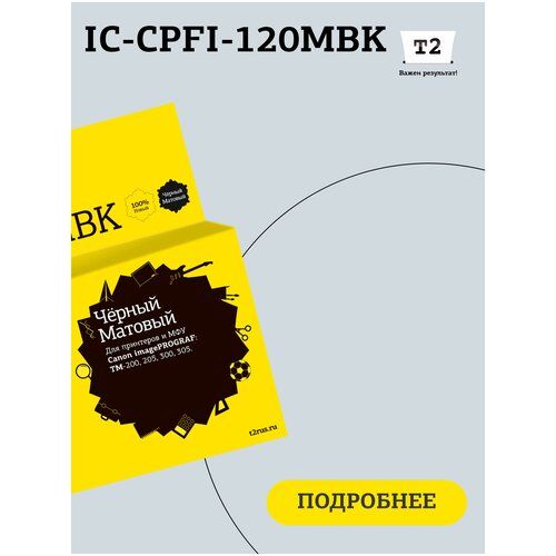 Картридж T2 IC-CPFI-120MBK для Canon imagePROGRAF TM-200/205/300/305, матовый черный, с чипом. Подходит для Canon imagePROGRAF TM-200/Canon imagePROGRAF TM-205/Canon imagePROGRAF TM-300/Canon imagePROGRAF TM-305. Аналог картриджа Canon PFI-120MBK/2884C001
