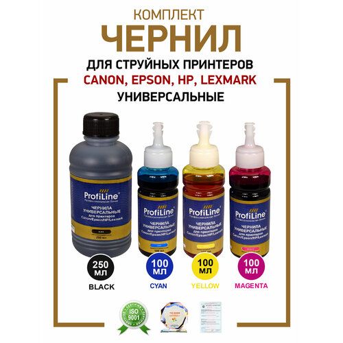 Найти - Чернила ProfiLine для принтера Canon / Epson / HP / Lexmark , комплект из 4 цветов BK-250мл, C/M/Y по 100мл, универсальные, на водной основе