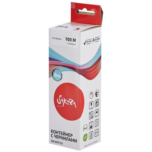 Найти - Контейнер с чернилами 103 M для Epson, цвет пурпурный, 7500 страниц, 70 мл, C13T00S34A, Sakura