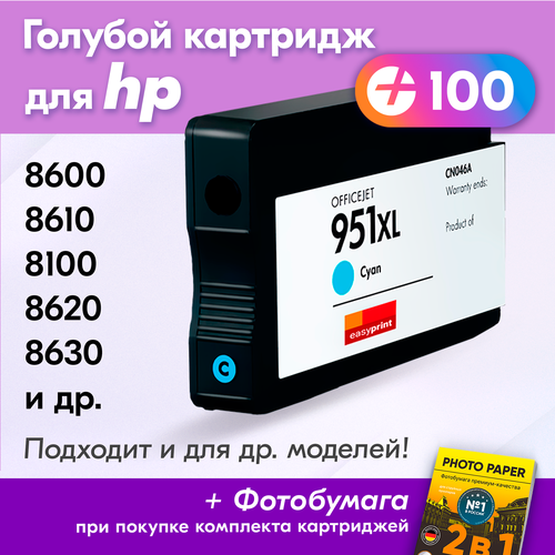 Найти - Картридж для HP 951 XL, HP Officejet Pro 8600, 8610, 8100, 8620 и др. с чернилами (с краской) для струйного принтера, Голубой (Cyan), 1 шт.