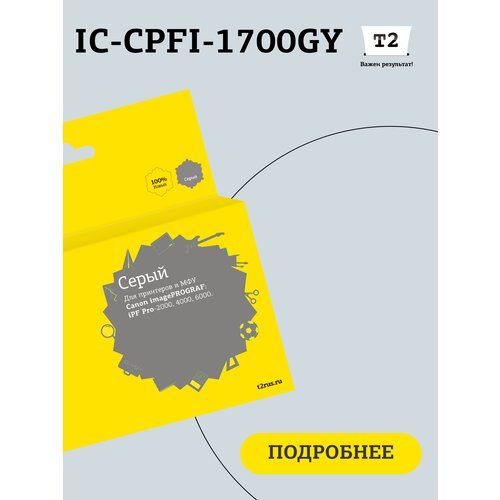 Струйный картридж Т2 IC-CPFI-1700GY для принтеров Canon imagePROGRAF iPF-PRO-2000/4000/6000, серый, совместимый.