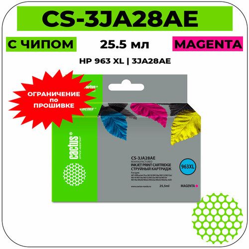 Cactus CS-3JA28AE картридж струйный увеличенный (есть ограничения по прошивке) (HP 963XL - 3JA28AE), пурпурный 25.5 мл для HP OfficeJet Pro 9010, 9010e, 9012, 9014, 9015, 9016, 9019