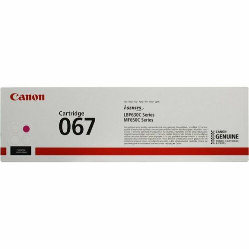 Тонер-картридж оригинальный Cartridge 067M пурпурный (красный, малиновый) Magenta 1.3K для i-SENSYS LBP631CW LBP631, LBP633Cdw LBP633, MF651Cw MF651, MF655Cdw MF655, MF657Cdw MF657. Тип: Тонер-картридж. Тип чернил: Laser. Серия: Cartridge 067. Номер: Cartridge 067M. Цвет: пурпурный. Совместимость: i-SENSYS LBP631CW LBP631, LBP633Cdw LBP633, MF651Cw MF651, MF655Cdw MF655, MF657Cdw MF657. Ресурс: 1250 стр.