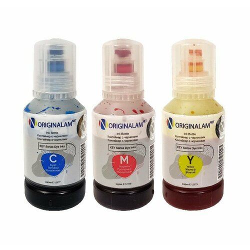 Чернила Originalamnet (Светостойкие) для Epson 3 цв. по 127 мл (C, M, Y), вид товара: Чернила для принтеров, чернила для Epson. Особенности: Ключ "Key Lock", Ключ для бснпч, Тип чернил: Светостойкие, Цвет: C M Y, Серия: 101/102 (001/002), 103/104 (003/004), Объем (мл): 127, Фасовка: Комплект, Для принтера Epson: L11050, L11058, L1110, L1118, L1119, L1210, L1218, L1250, L1258, L1259, L3050, L3100, L3101, L3106, L3108, L3109, L3110, L3115, L3116, L3117, L3118, L3119, L3150, L3151, L3153, L3156, L3158, L316, L3160, L3163, L3166, L3167, L3168, L3169, L3200, L3210, L3216, L3218, L3219, L3250, L3251, L3253, L3254, L3255, L3256, L3258, L3266, L3267, L3268, L3269, L3556, L3558, L5190, L5196, L5198, L5256, L5298, ET-2700, ET-2750, ET-2760, ET-3700, ET-3710, ET-3750, ET-3760, ET-4750, ET-4760, L14100, L14150, L14158, L15158, L15168, L4100, L4150, L4160, L4167, L4200, L4260, L4261, L4263, L4266, L4267, L4268, L4269, L6100, L6160, L6170, L6171, L6178, L6190, L6200, L6260, L6270, L6276, L6290, ST-2000, ST-3000, ST-4000, ET-7750, ET-7700, L7160, L7180, L7188, WF2510, WF2520, WF2530, WF2540, WF2630, WF2650, WF2660, WF3520, WF3720, WF3725, WF3733, XP100, XP200, XP240, XP245, XP300, XP310, XP320, XP330, XP340, XP344, XP400, XP410, XP420, XP424, XP430, XP434, XP440, XP442, XP446, XP452, PX-045A, PX-047A, PX-049A, WF2810, WF2820, WF2830, WF2835, WF2840, WF2845, WF2850, WF2870, WF2910, WF2930, WF2935, WF2950, XP102, XP103, XP202, XP203, XP205, XP207, XP2100, XP2105, XP212, XP215, XP2150, XP2155, XP2200, XP2205, XP225, XP235, XP30, XP302, XP303, XP305, XP306, XP3100, XP3105, XP312, XP313, XP315, XP3150, XP3155, XP3200, XP3205, XP322, XP323, XP325, XP33, XP332, XP335, XP342, XP352, XP402, XP403, XP405, XP406, XP4100, XP4105, XP412, XP413, XP415, XP4150, XP4155, XP4200, XP4205, XP422, XP423, XP425, XP432, XP435, XP510, XP520, XP530, XP540, XP600, XP605, XP610, XP615, XP620, XP625, XP630, XP635, XP640, XP645, XP650, XP655, XP700, XP710, XP720, XP800, XP810, XP820, XP830, XP900, WF4630, WF4640, WF5110, WF5190, WF5620, WF5690, WF7015, WF7510, WF7515, WF7520, WF7525, WFC5290, WFC529R, WFC5710, WFC5790, WFC579R, WFC8190, WFC8690, WP4000, WP4015, WP4020, WP4025, WP4095, WP4500, WP4515, WP4525, WP4535, WP4545, WP4595, Производитель: Originalamnet, Артикул: 1217779, Вес: 0.54 кг, Размеры товара: 5,5x17x14 см, Размеры в упаковке: 6x18x15 см.