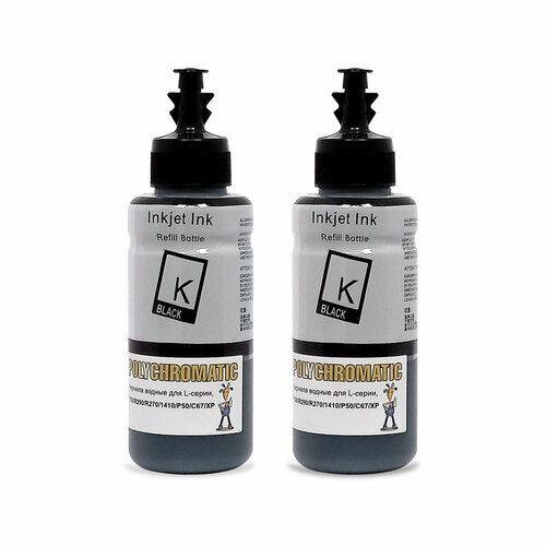 Чернила Polychromatic (JetPrint) (водные) для Epson 2 шт. по 100 мл (Black), вид товара: Чернила для принтеров, чернила для Epson. Тип чернил: Водорастворимые, Цвет: Black, Объем (мл): 100, Фасовка: Комплект, Для принтера Epson: L18050, L18058, L8050, L8058, ET3600, ET16500, L100, L110, L120, L121, L1300, L132, L200, L210, L222, L300, L312, L350, L355, L362, L364, L366, L382, L386, L456, L486, L550, L555, L566, L605, WF3620, WF3640, WF7110, WF7210, WF7610, WF7620, WF7710, WF7720, 1500W, L1800, L800, L805, L810, L850, 1270, 1290, 1410, 900, P50, PX600, PX650, PX660, PX700, PX710, PX720, PX730, PX800, PX810, PX820, PX830, R200, R220, R265, R270, R285, R290, R295, R300, R320, R340, R360, R390, R585, RX500, RX560, RX585, RX590, RX600, RX610, RX615, RX620, RX640, RX685, RX690, T50, T59, TX650, TX659, TX700, TX710, TX800, XP55, XP750, XP760, XP850, XP860, XP950, XP960, EP-306, EP-705A, EP-706A, EP-707A, EP-708A, EP-709A, EP-710A, EP-775A, EP-776A, EP-777A, EP-806A, EP-807A, EP-879, EP-977, EP-979, WF2510, WF2520, WF2530, WF2540, WF2630, WF2650, WF2660, WF3520, WF3720, WF3725, WF3733, XP100, XP200, XP240, XP245, XP300, XP310, XP320, XP330, XP340, XP344, XP400, XP410, XP420, XP424, XP430, XP434, XP440, XP442, XP446, XP452, PX-045A, PX-047A, PX-049A, WF2810, WF2820, WF2830, WF2835, WF2840, WF2845, WF2850, WF2870, WF2910, WF2930, WF2935, WF2950, XP102, XP103, XP202, XP203, XP205, XP207, XP2100, XP2105, XP212, XP215, XP2150, XP2155, XP2200, XP2205, XP225, XP235, XP30, XP302, XP303, XP305, XP306, XP3100, XP3105, XP312, XP313, XP315, XP3150, XP3155, XP3200, XP3205, XP322, XP323, XP325, XP33, XP332, XP335, XP342, XP352, XP402, XP403, XP405, XP406, XP4100, XP4105, XP412, XP413, XP415, XP4150, XP4155, XP4200, XP4205, XP422, XP423, XP425, XP432, XP435, XP510, XP520, XP530, XP540, XP600, XP605, XP610, XP615, XP620, XP625, XP630, XP635, XP640, XP645, XP650, XP655, XP700, XP710, XP720, XP800, XP810, XP820, XP830, XP900, WF4630, WF4640, WF5110, WF5190, WF5620, WF5690, WF7015, WF7510, WF7515, WF7520, WF7525, WFC5290, WFC529R, WFC5710, WFC5790, WFC579R, WFC8190, WFC8690, WP4000, WP4015, WP4020, WP4025, WP4095, WP4500, WP4515, WP4525, WP4535, WP4545, WP4595, Производитель: Polychromatic, Артикул: 26240, Страна изготовитель: Китай, Вес: 0.25 кг, Размеры товара: 9x4,5x14 см, Размеры в упаковке: 10x6x15 см.