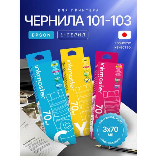 Найти - Чернила 101/103 Key Lock для Epson L-series L1110, L3100, L3150, L3160, L4150, L4160 и др, комплект из 3 цветов по 70 мл, совместимые
