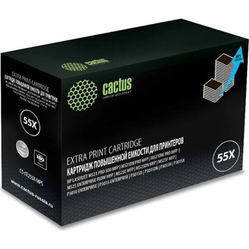 Лазерный картридж увеличенной емкости Cactus CS-CE255X-MPS Предназначен для использования в принтерах HP LaserJet M521 Pro 500 MFP, M521dn Pro MFP (A8P79A), M521dw Pro MFP (A8P80A), M525 Enterprise flow MFP, M525c MFP, M525dn MFP, M525f MFP, P3010 Enterprise, P3015 Enterprise, P3015d, P3015dn, P3015n, P3015x Страна производства - Китай Цвет – черный