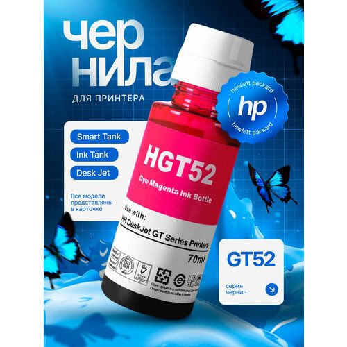 Пурпурные (Magenta) чернила GT52 в флаконе 70 мл предназначены для заправки принтеров и МФУ со встроенными перезаправляемыми контейнерами HP: